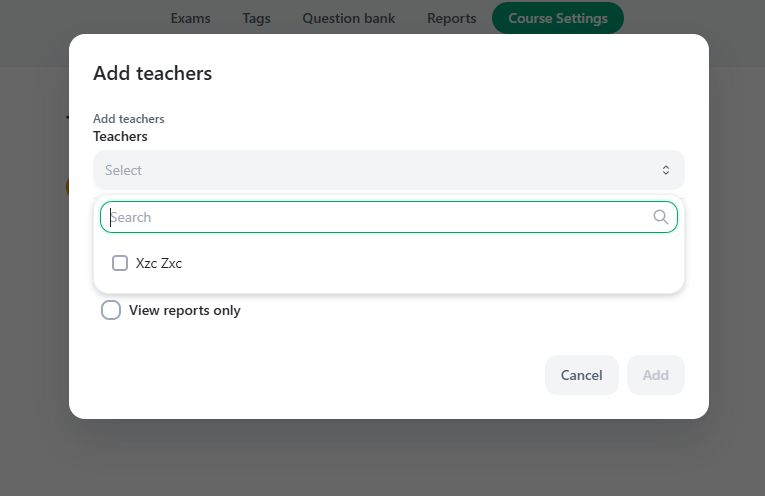 - Note: Only members with the Teacher or Supervisor role can be added to courses. Organization Owners and Admins already have automatic access to all courses and cannot be added through this dialog.