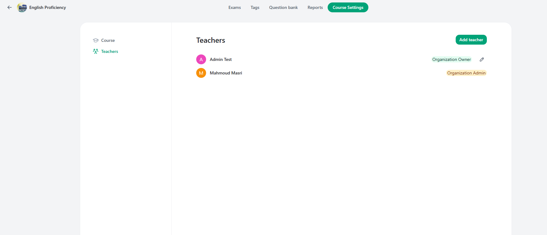 - Permission Changes: You can modify a member’s permissions after adding them by clicking on their role tag in the Teachers list.